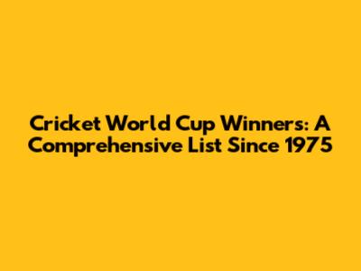 Cricket World Cup Winners: A Comprehensive List Since 1975