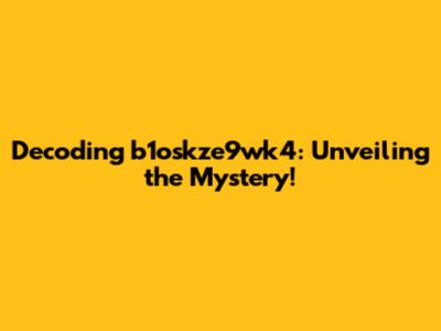 Decoding B1oskze9wk4: Unveiling The Mystery!