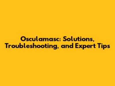 Osculamasc: Solutions, Troubleshooting, And Expert Tips